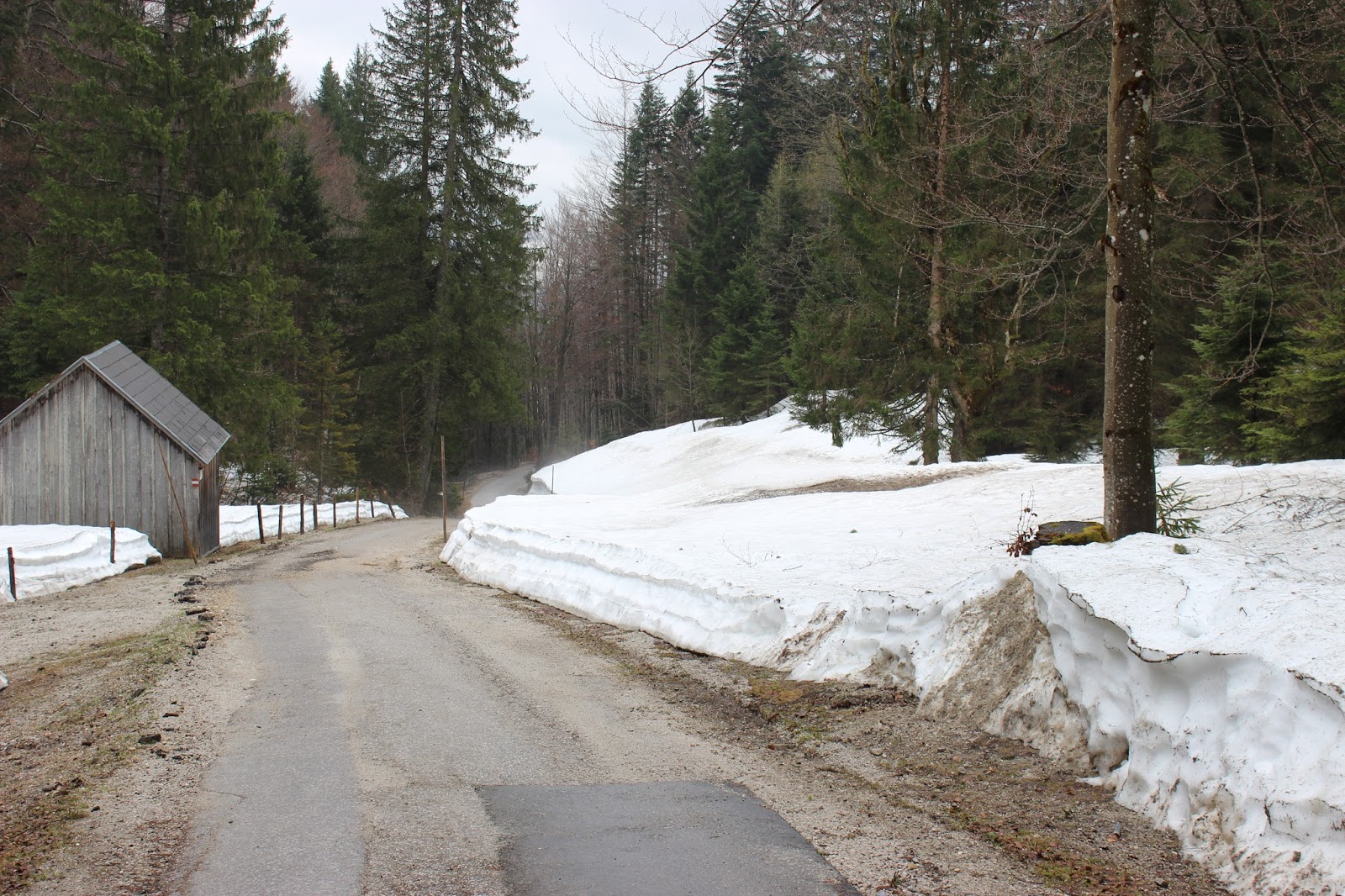Did you know that if you go by major four-lane tollways, it takes 3 hours 10 minutes, according to our GPS, to get from Oggau to Salzburg, but if you select “avoid tollways” on the app, it takes closer to 6 hours – slower in a campervan – because of all the small town roundabouts and mountain hairpin curves? Not only that, but because you are seeing all the pretty, small towns and beautiful, majestic mountains, you have to stop and take pictures and take walks and play in the snow and dip your hands in the cold mountain streams and tour the salt mines. So it took us two days. Thanks to the town of Liezen for providing a free camper parking spot along a beautiful walking trail, nestled between the town and the snow-capped mountains. Photos of our journey are below.